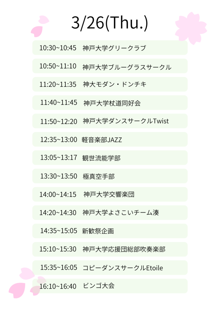 ステージ出展タイムテーブル